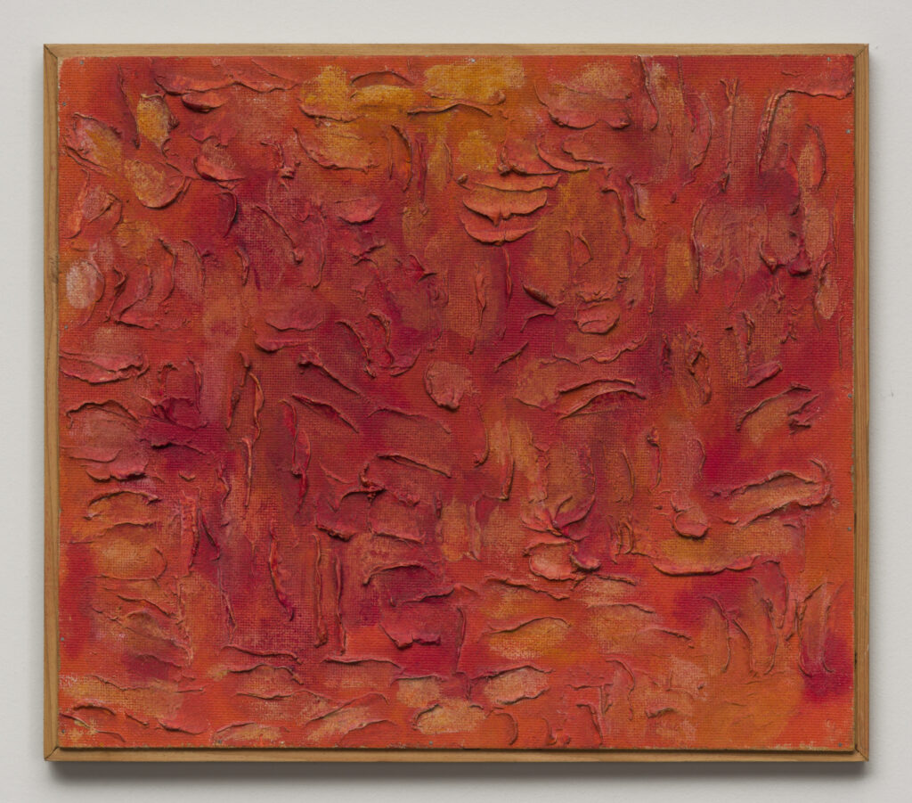 „Menschen, wie Blumen … Früchte, wie Menschen … Farben, die blühen“, als Hal Busse diese Sätze voller Enthusiasmus über ihre neu entstandenen Arbeiten in ihr Tagebuch schrieb, lebte sie „im Farbrauch“. Rot, vor allem Rot wird zu ihrer Schlüssel- und Lieblingsfarbe. „Rot geht mit allen Farben“ freut sie sich 1964. Da hat eine neue Haltung, Offenheit und Vielstimmigkeit in ihrem Œuvres die Oberhand gewonnen. Eindrucksvoll vor allem jene Arbeiten, die zwischen Gegenständlichkeit und Abstraktion pendeln – etwa die großformatige „Obsternte“ (1952/53), eine lyrische Bildfindung, die die Künstlerin auf internationalem Niveau zeigt.